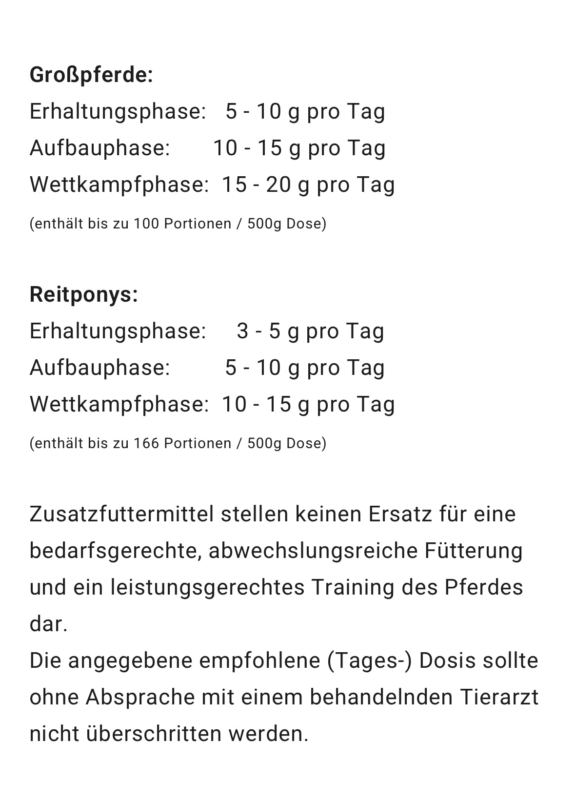- Für Jungpferde im Aufbau, Sportpferde in Wettkampfphasen und Freizeitpferde gleichermaßen geeignet