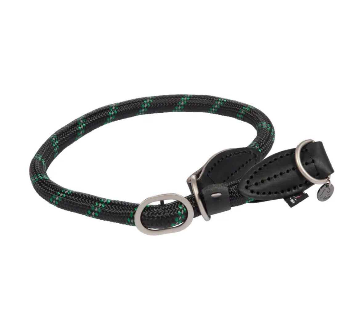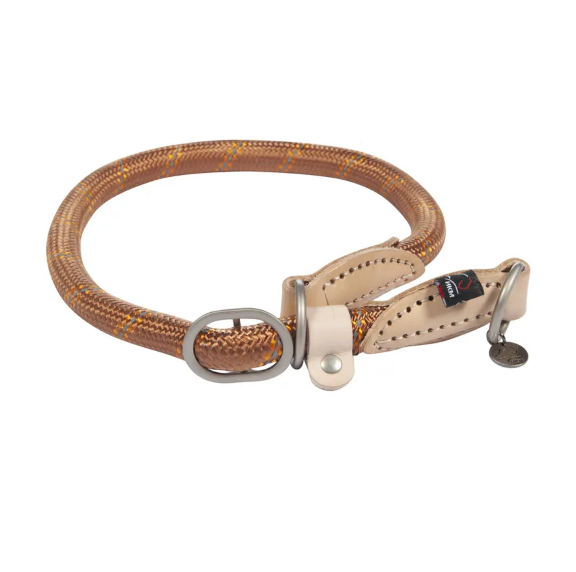 Das Zugstopphalsband „Anam Cara“ Tau von HKM ist die ideale Kombination aus Sicherheit, Komfort und elegantem Design. Es kommt ganz ohne zusätzlichen Verschluss aus – der integrierte Metall-Stopper begrenzt den Zug sanft und zuverlässig, sodass dein Hund optimal geführt wird.
