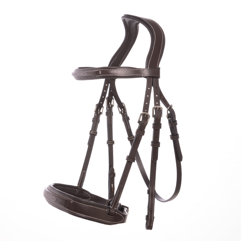 Die Huntertrense Benita überzeugt durch ihr elegantes, reduziertes Design und ihre hohe Funktionalität. Gefertigt aus hochwertigem europäischem Leder, ist sie speziell für das Hunter Springen entwickelt. Das anatomisch geformte Genickstück entlastet die Nervenbahnen und bietet den Ohren optimale Bewegungsfreiheit. Genickstück und Nasenriemen sind weich unterpolstert und sorgen für hohen Tragekomfort.