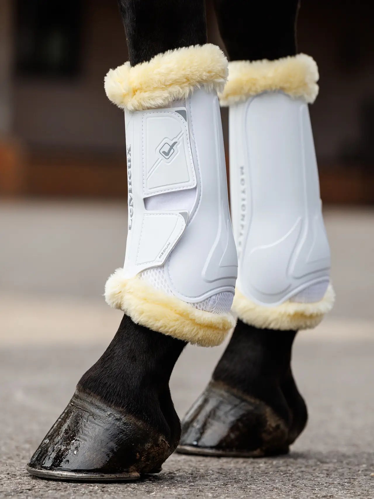 Entwickelt für anspruchsvolle Pferde vereinen die Motionflex Dressurgamaschen innovative Technologie mit höchstem Tragekomfort. Das eng anliegende Design unterstützt gezielt Sehnen und Gelenke, während der geformte TPU-Schutz für optimalen Halt und zuverlässige Sicherheit sorgt – ohne die Bewegungsfreiheit Ihres Pferdes einzuschränken.