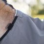 Für besten Sitz und Komfort sorgen eine doppellagige Bauchlatz-Abdeckung mit drei Bauchgurten, zwei elastische Beinschnüre, Beinfalten für maximale Bewegungsfreiheit und eine ergonomisch geformte Schweifabdeckung. Dank Brustverschluss mit Schnallen und Klett bleibt die Decke perfekt an Ort und Stelle.