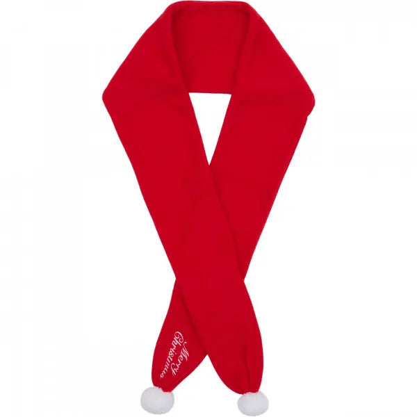 Das kuschelig weiche Fleece-Material sorgt für hohen Tragekomfort, während die weißen Teddybommel an den Enden und die elegante „MERRY CHRISTMAS“-Stickerei den perfekten Weihnachtslook abrunden.