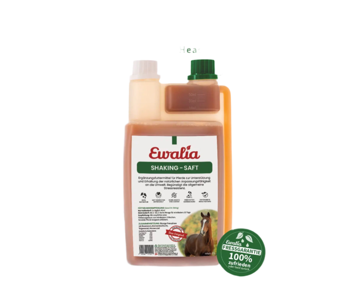 Der Shakingsaft unterstützt das Nervensystem deines Pferdes auf natürliche Weise. Die Kombination aus adaptogenen Kräutern wie Taiga-, Maca- und Rosenwurzel kann helfen, Headshaking-Symptome signifikant abzuschwächen und sorgt für mehr Wohlbefinden.